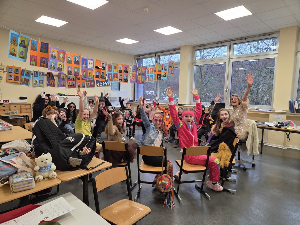 An Weiberfastnacht feiern wir Karneval in der Wendelinusschule. Zuerst in den Klassen und dann alle zusammen in der Turnhalle.