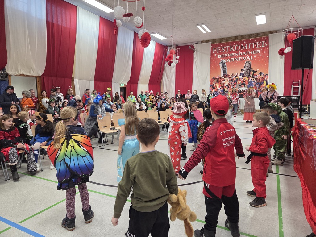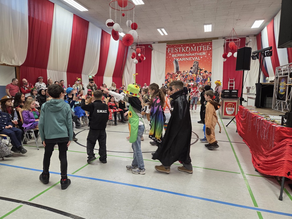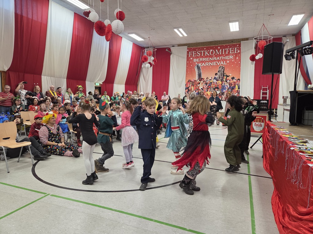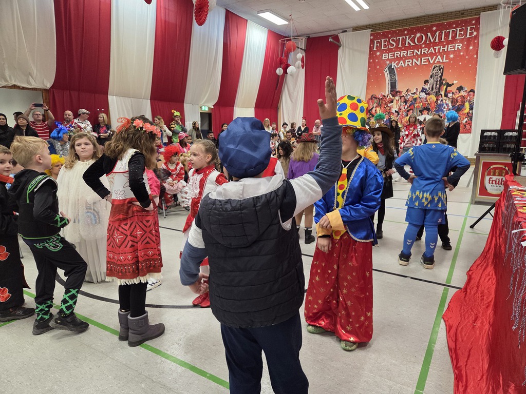 Nach dem Klassenkarneval wurde im Anschluss mit allen Kindern und vielen Eltern in der Turnhalle der Schulkarneval weitergefeiert. Dabei hatte jede Klasse unihren großen Auftritt. Zum Anschluss durfte auch der Auftritt des Lehrerkollegiums in diesem Jahr mit "Wackelkontakt" nicht fehlen.